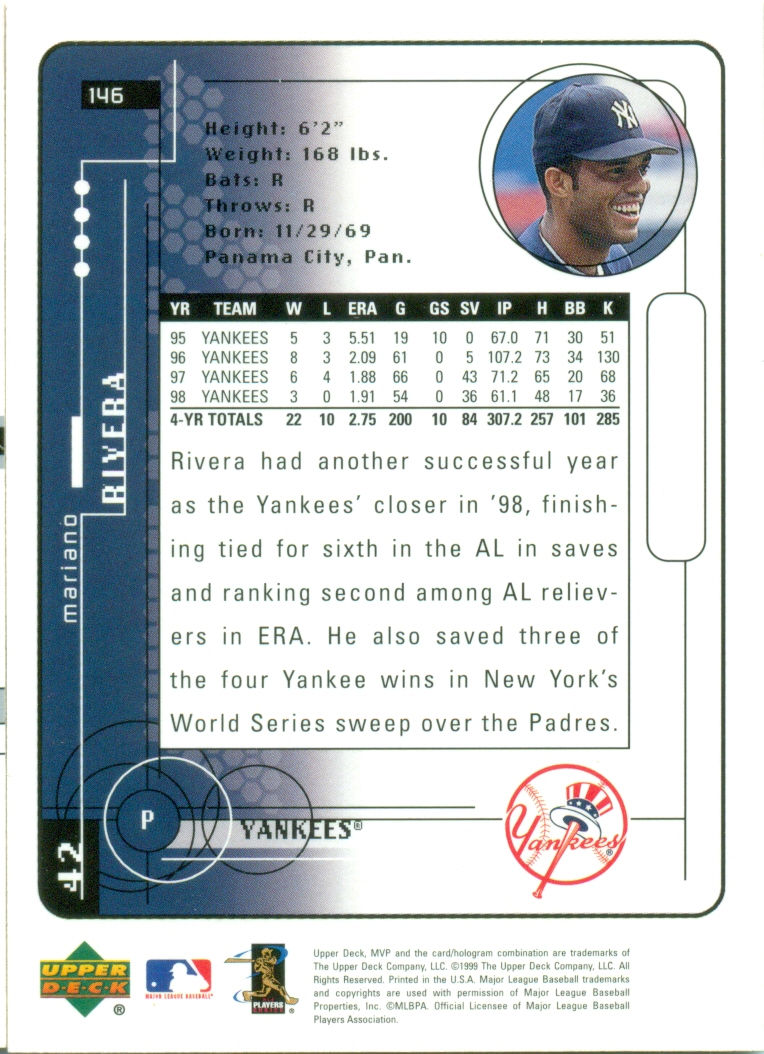 1999 Upper Deck MVP #146, Mariano Rivera, New York Yankees