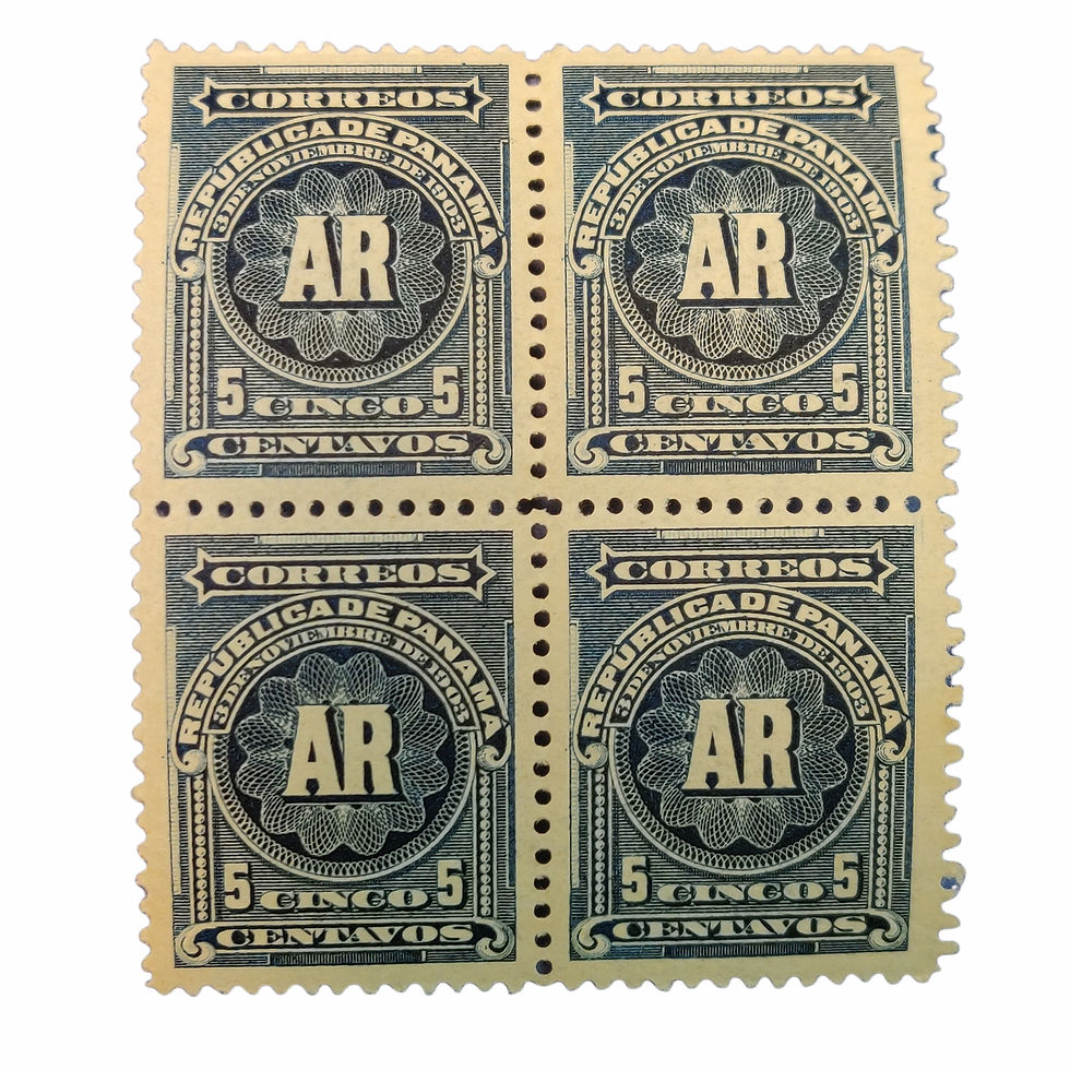 Bloque de 4 estampillas de 5 cent. AR, Sello Scott H22, MNH, Acuse de recibo
