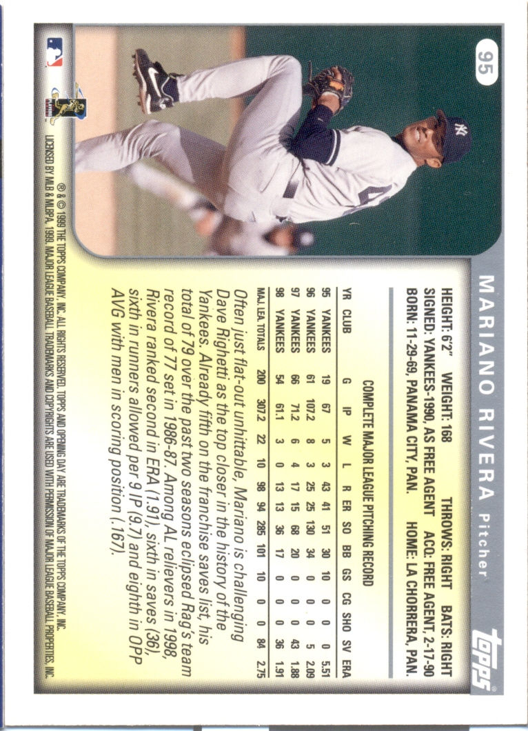 1999 Topps Opening Day #95 Mariano Rivera Yankees de New York